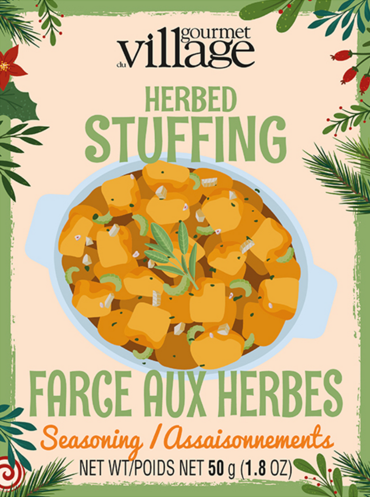 Herbed Stuffing Seasoning:ย A savory combination of herbs, onions and garlic, the perfect blend to whip up homemade stuffing without all the time-consuming chopping and prep work. Contains enough seasoning mix for two recipes, for a total yield of 6 cups of prepared stuffing.